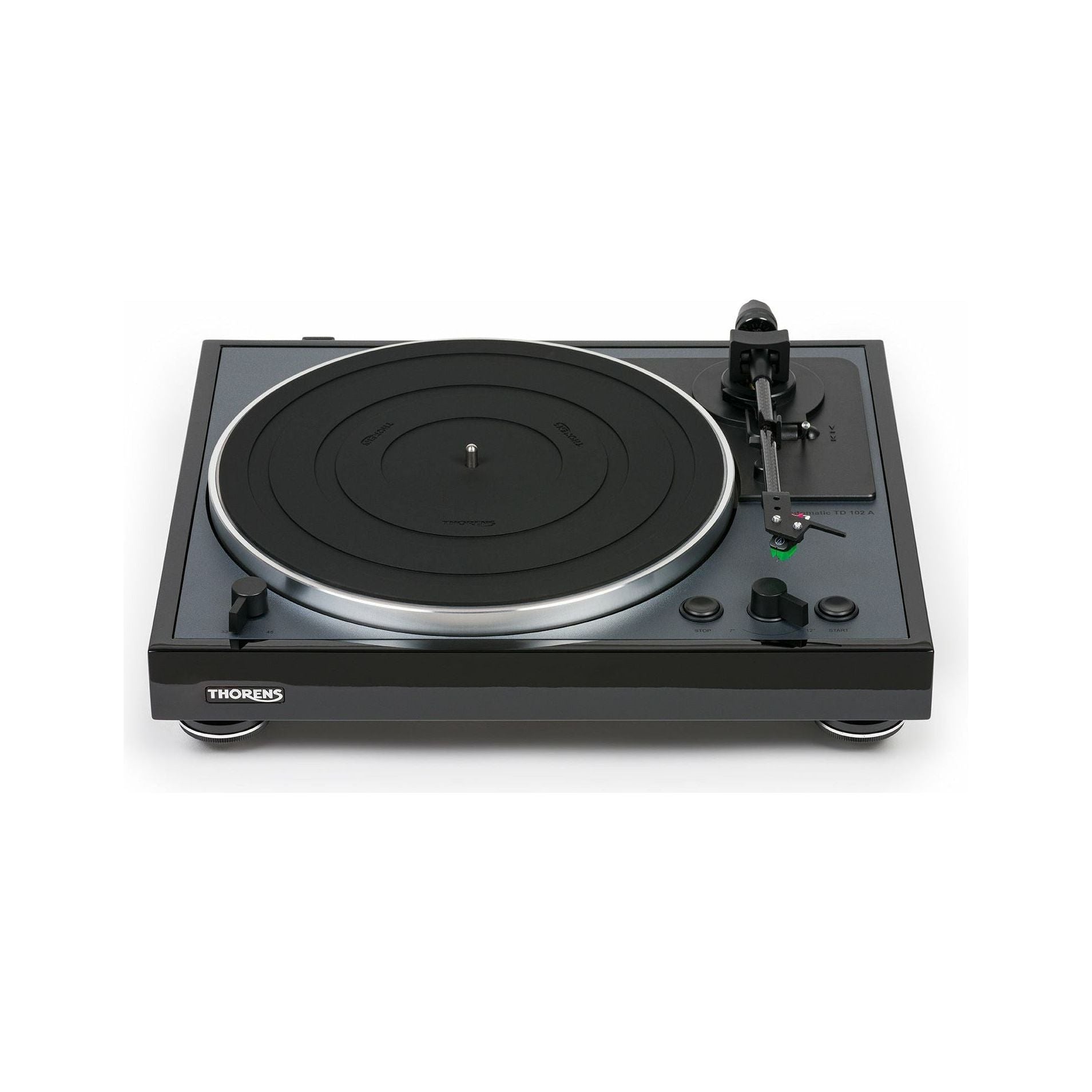 The TD 102 A is available in surfaces "black high-gloss" or "walnut high-gloss", with care being taken during the development phase to emphasize the typical THORENS design. A high sound quality and a long service life complete the typical properties as you have been used to from THORENS for many years.